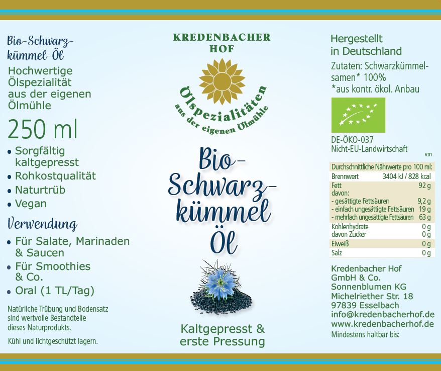 Organic black cumin seed oil – Extra cold-pressed and unfiltered, 6 x 0.25l